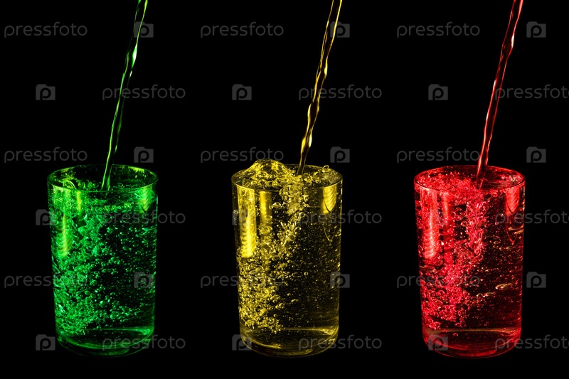 Стаканы с разноцветными напитками. Изолированные на черном фоне