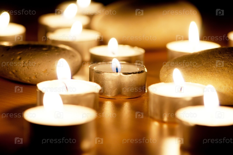 Горящие свечи и камни для ароматерапии