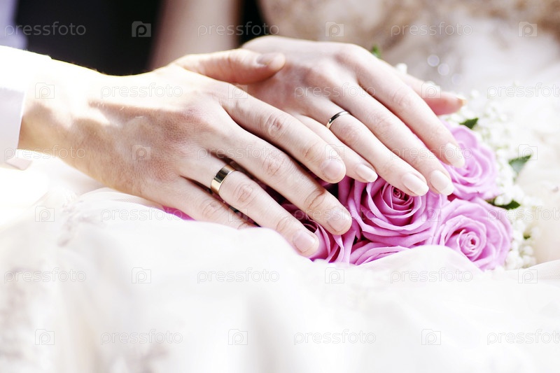 Обручальные кольца на руках молодоженов