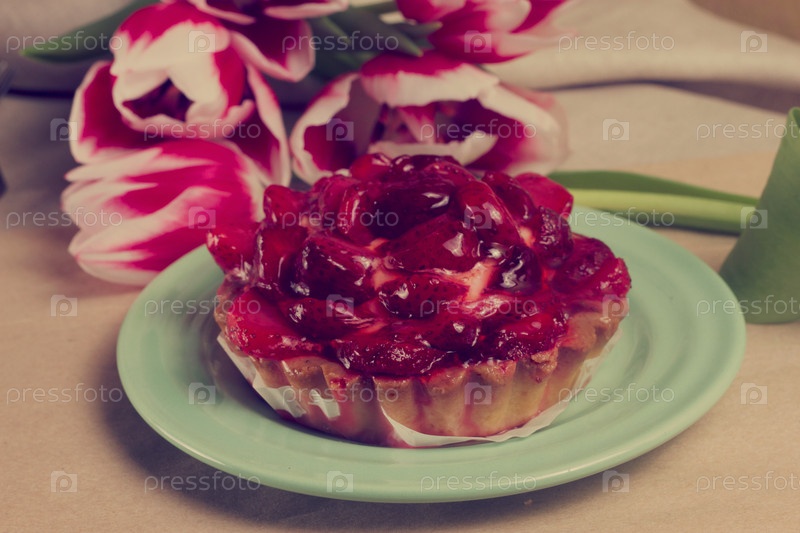 Клубничный кексг в тарелке