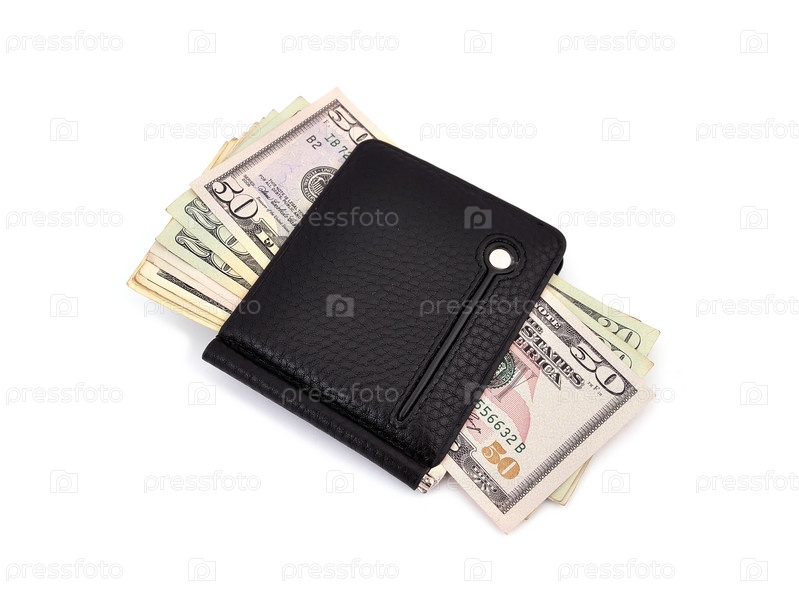 Зажим для денег и доллары на белом фоне
