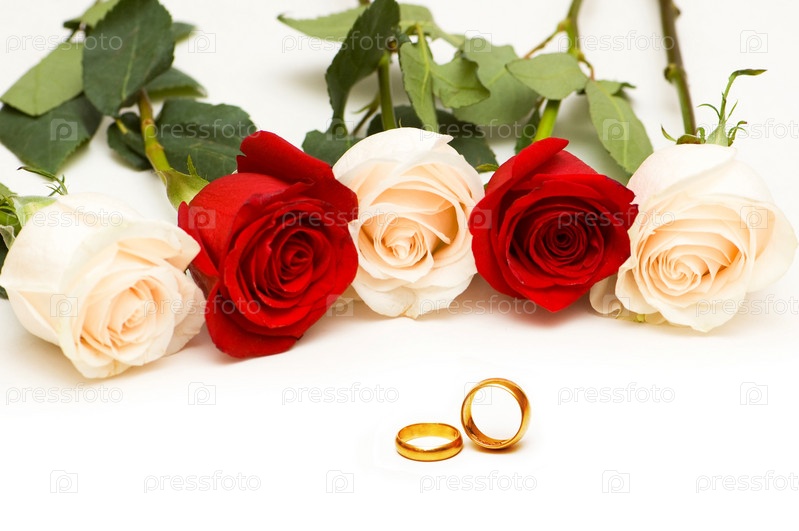Свадебная открытка с розами и кольцами