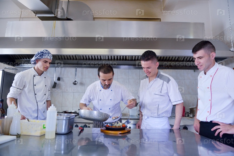 Шеф-повар готовит блюдо в кухне