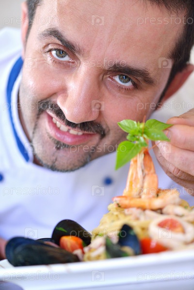 Шеф-повар готовит еду