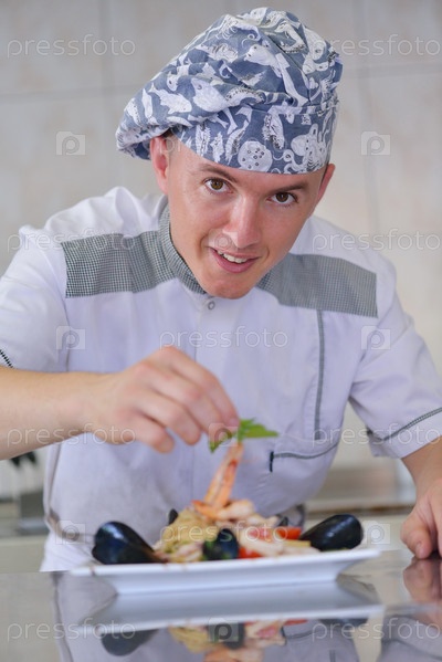 Шеф-повар готовит еду