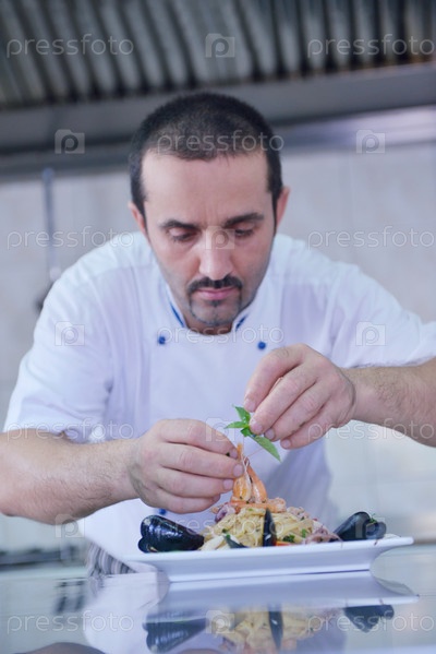 Шеф-повар готовит еду
