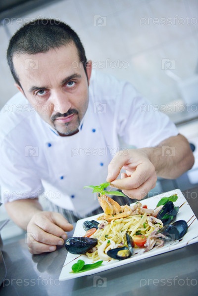 Шеф-повар готовит еду