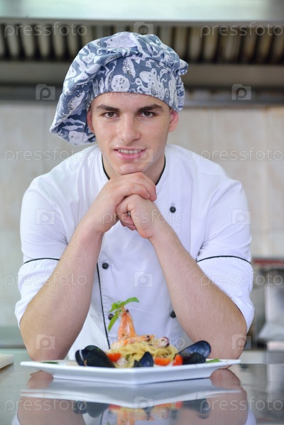 Шеф-повар готовит блюдо в кухне