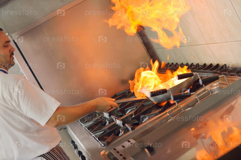 Шеф-повар готовит блюдо на кухне