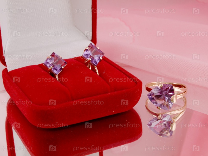 Серьги и кольцо с аметистом