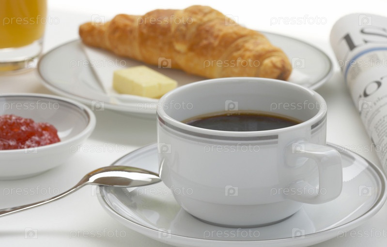 Кофе с круассаном на столе