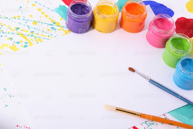 Краски и кисточки на бумаге