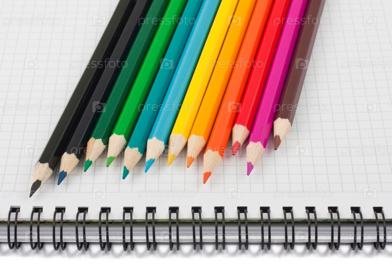 Цветные карандаши на тетради