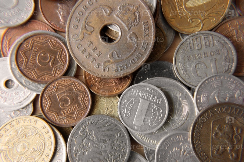 Старинные монеты на белом фоне