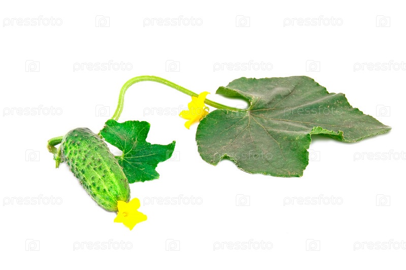 Свежий огурец с листьями на белом фоне