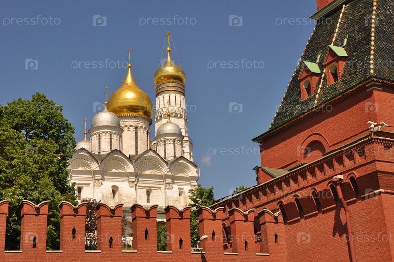 Фрагмент Кремлевской стены и вид на Патриарший дворец с церковью Двенадцати апостолов