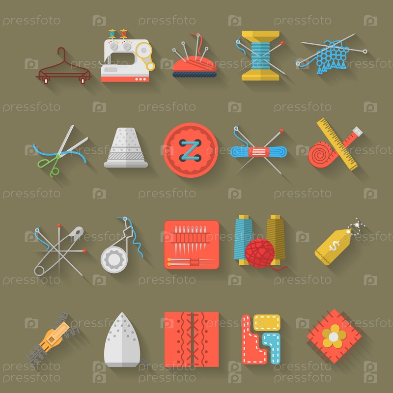 Коллекция плоских значков принадлежностей для шитья