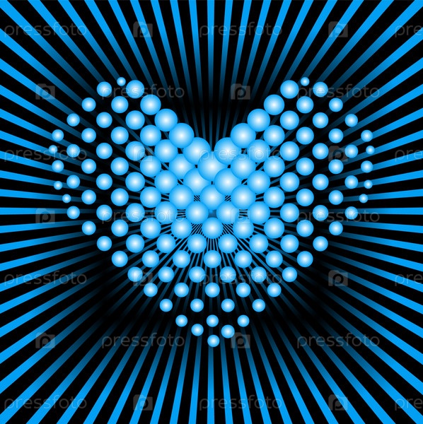 Сердце из синих шаров на черном фоне