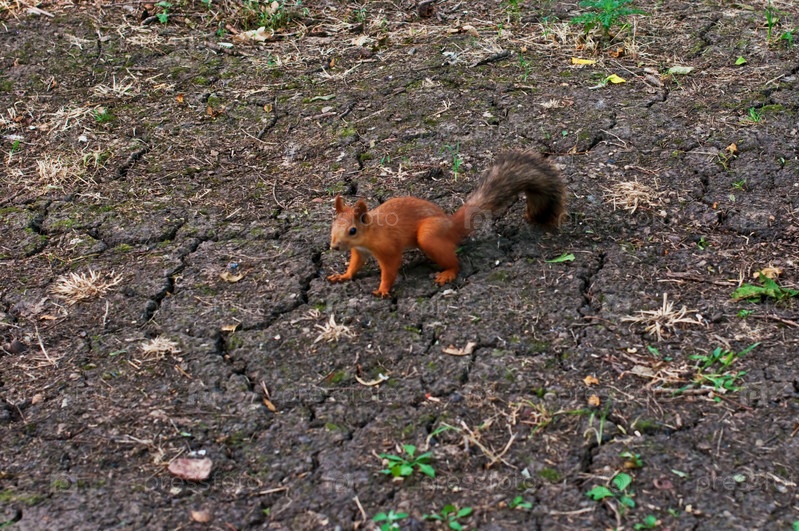 Белка сидит на земле в парке