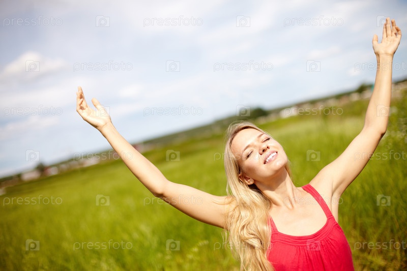 Радостная девушка в поле