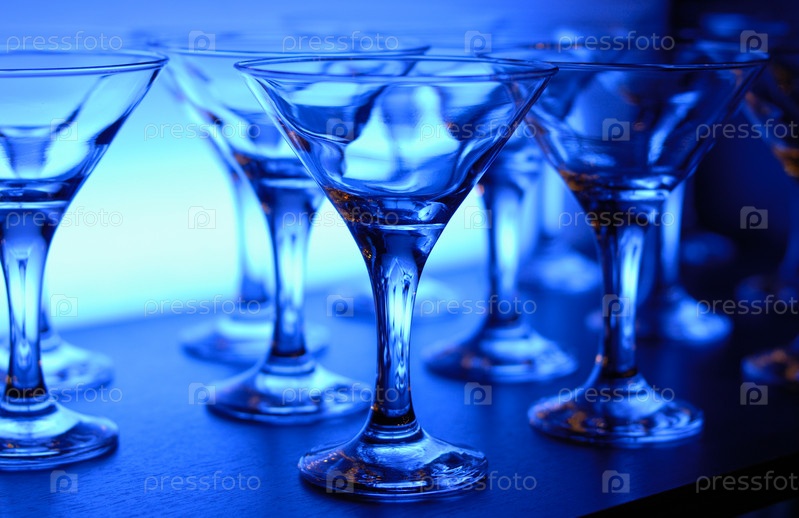 Стеклянные бокалы на синем фоне