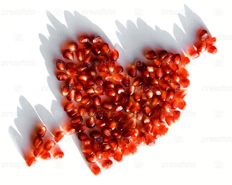 Изображение гранатного сердца, пробитого стрелой на белом фоне