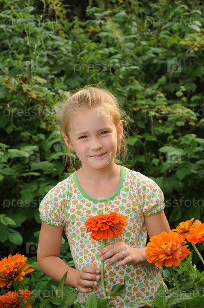 Маленькая девочка среди цветов