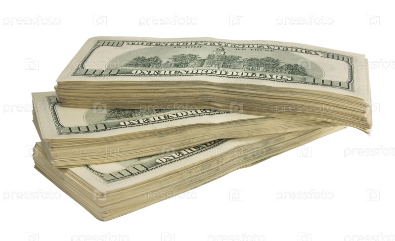 Стопка долларов на белом фоне