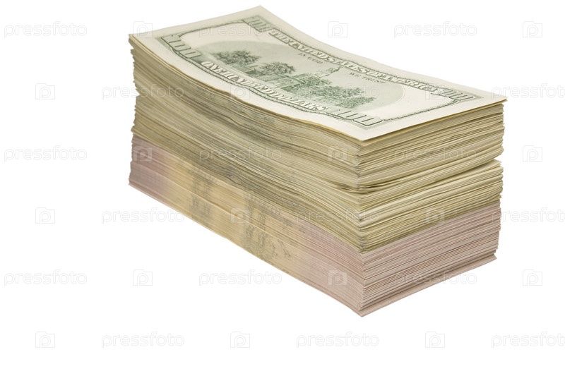 Стопка долларов на белом фоне
