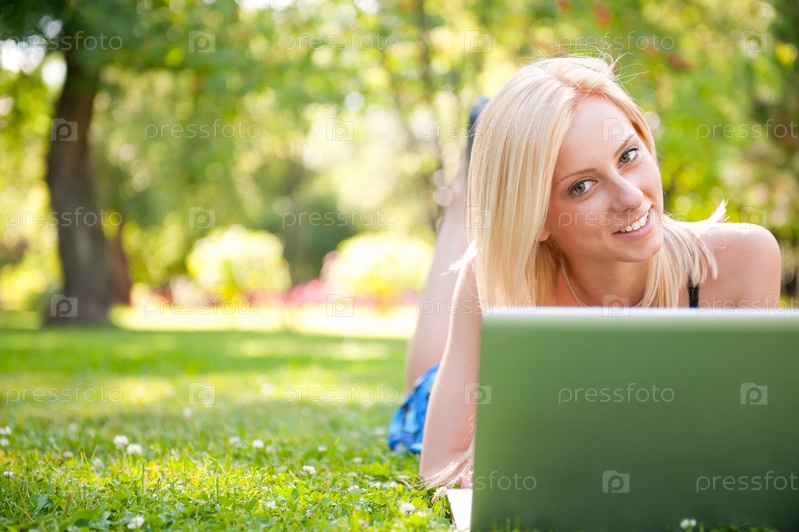 Девушка с ноутбуком в парке