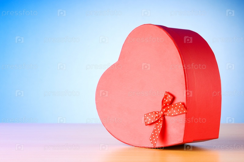 Подарочная коробка в форме сердца на голубом фоне