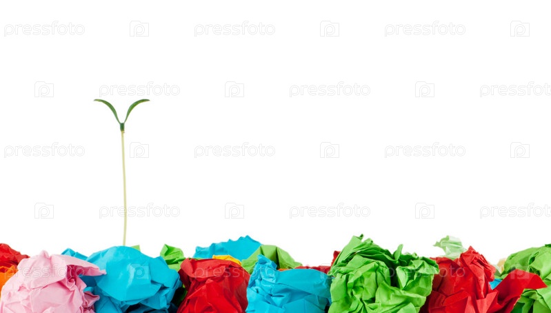 Росток в куче скомканной бумаги