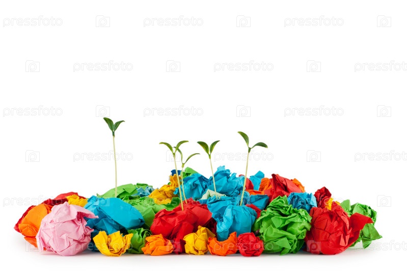 Ростки в куче скомканной бумаги