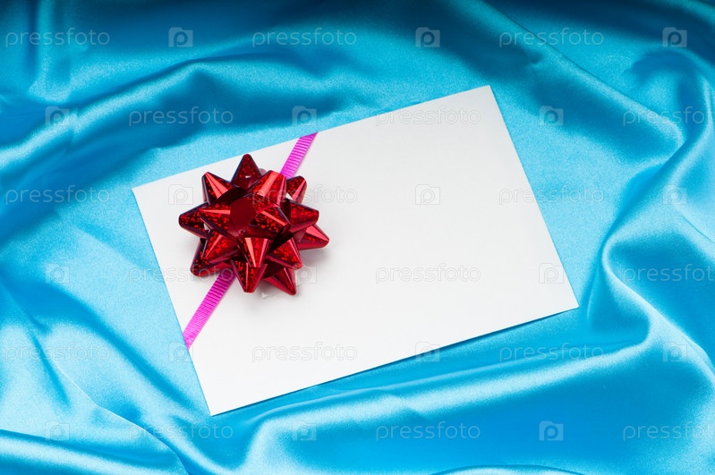 Белая поздравительная карточка на синей ткани