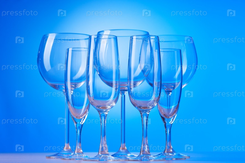 Пустые бокалы на голубом фоне