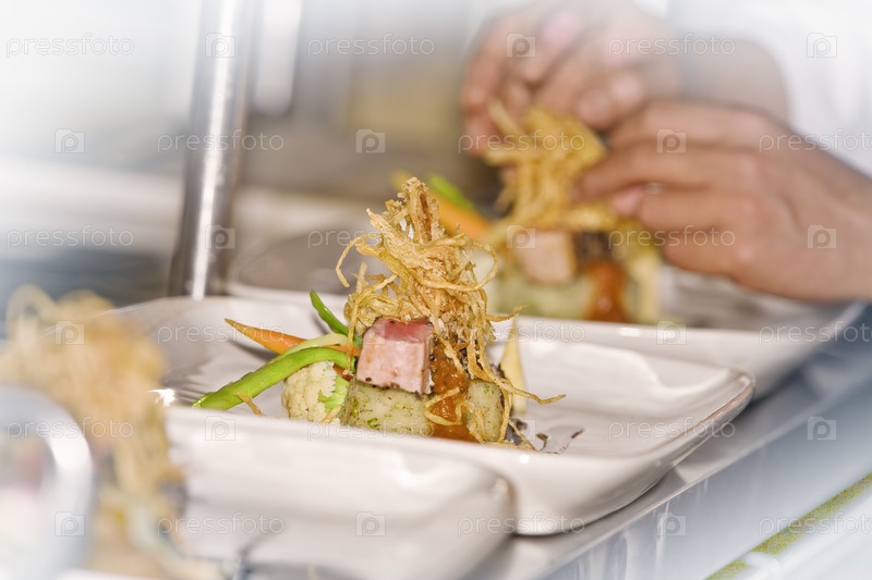 Повар готовит блюдо