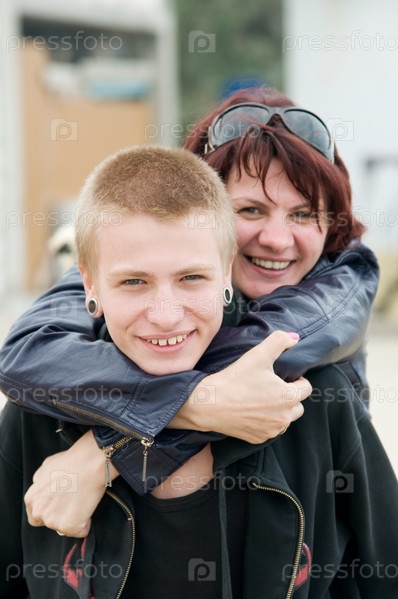 Счастливая мать с сыном-подростком