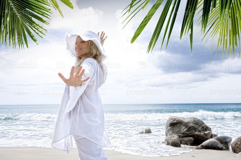 Молодая женщина на берегу моря