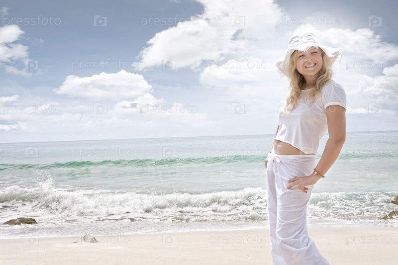 Молодая женщина на берегу моря