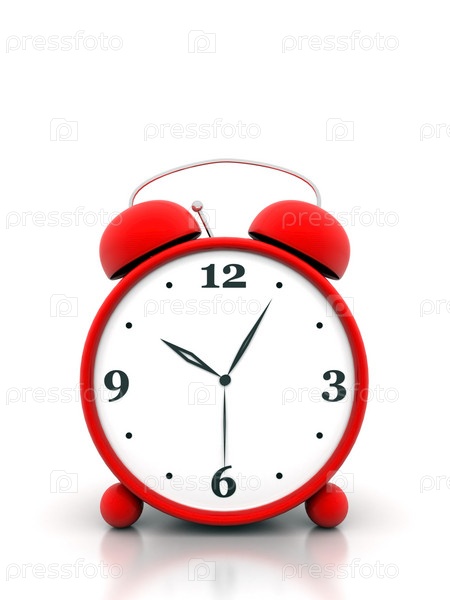 Красный будильник на белом фоне