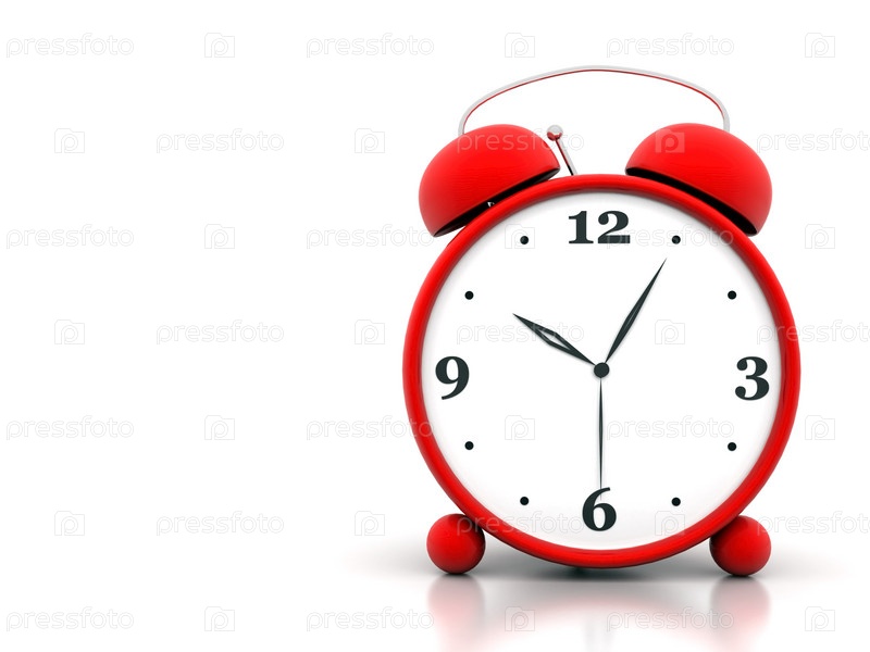 Красный будильник на белом фоне