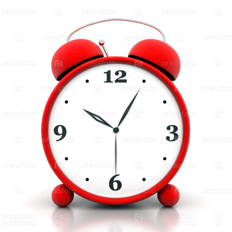 Красный будильник на белом фоне