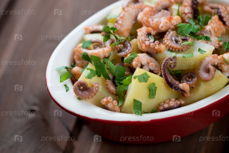 Салат с осьминогом, картофелем и петрушкой