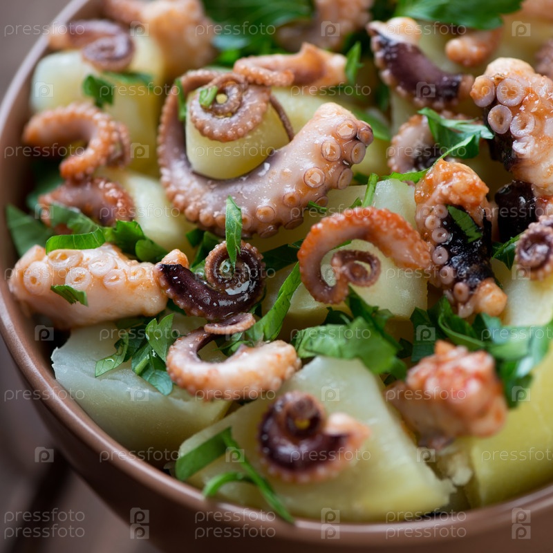 Салат с осьминогом, картофелем и петрушкой