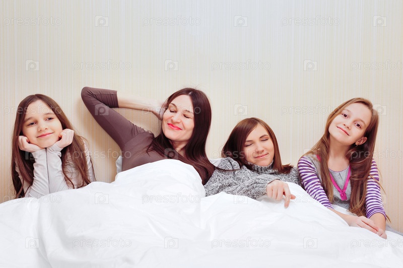 Мама с дочерьми в спальне