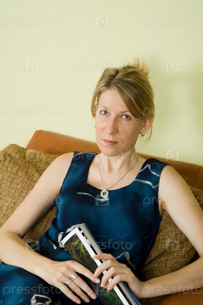 Женщина с журналом сидит в кресле