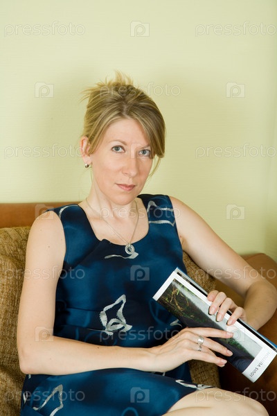 Женщина с журналом сидит в кресле