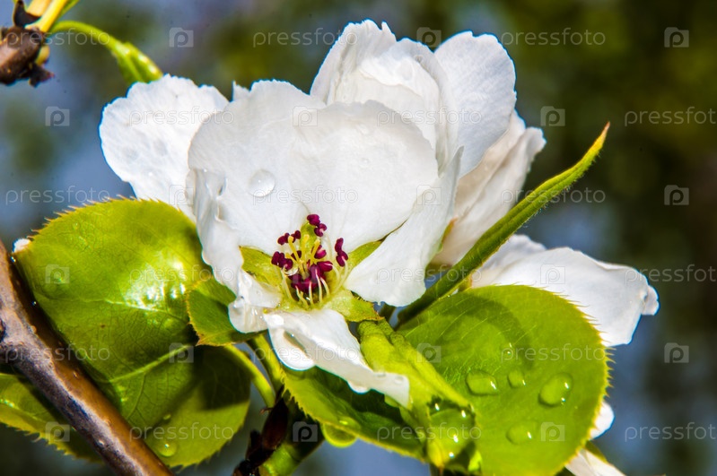 Цветы яблони после дождя