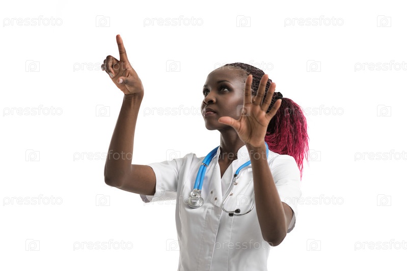 Врач работает с невидимым интерфейсом