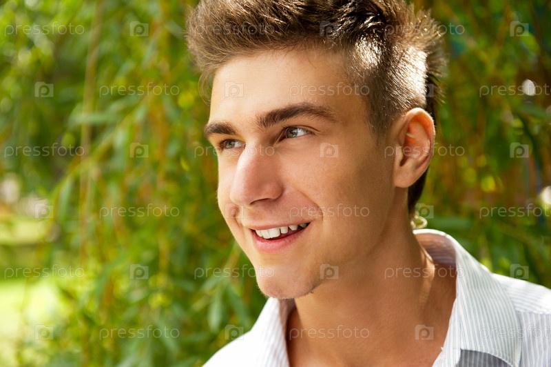 Улыбающийся молодой парень в летнем парке